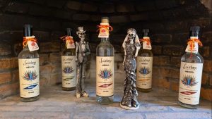 Tenemos 4 variedades: minero, reposado, pechuga y gusano. Cada botella viene con su costalito con sal de gusano.